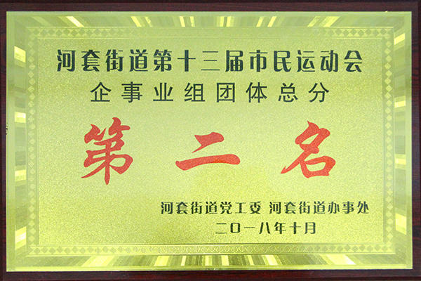 青島牧野集團獲得河套街道第九屆市民運動會企事業組團體總分第二名;